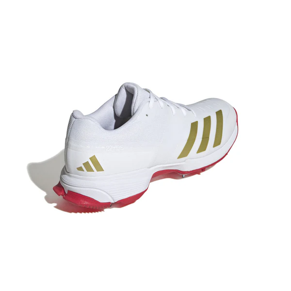 Take your game to the next level. Built specifically for cricket, these adidas shoes provide superior grip and stability on the pitch. With a light and comfortable feel, they provide a secure fit while allowing you to move freely. Perfect for all formats of the game, they have an energy-returning midsole that helps you stay light on your feet. Colour- White/Gold Met./Pure Ruby, Lucid Red/Zero Met./Lucid Red Size -6--13
