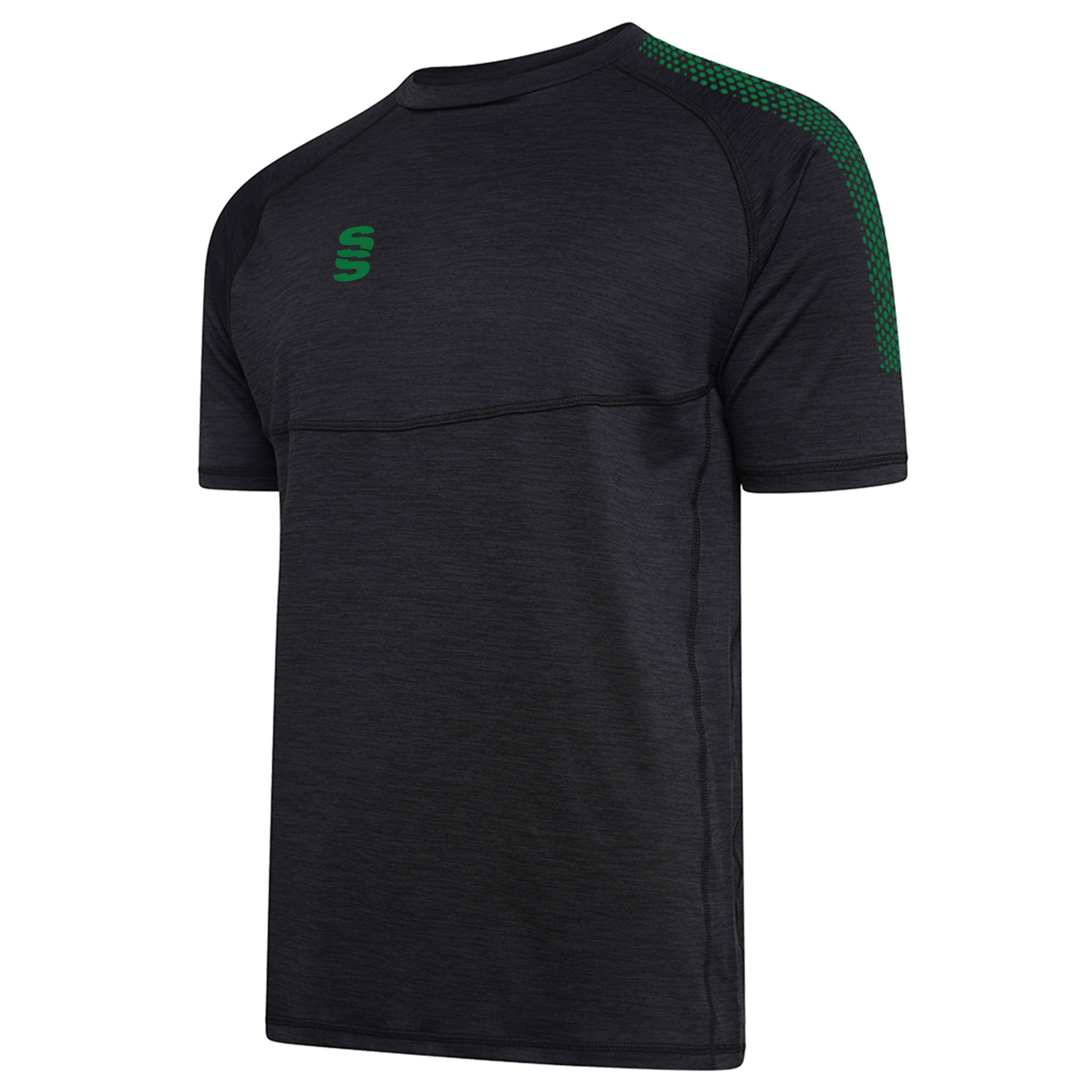 Round Neck fitted t-shirt with slight performance tail and overlock stitching detail