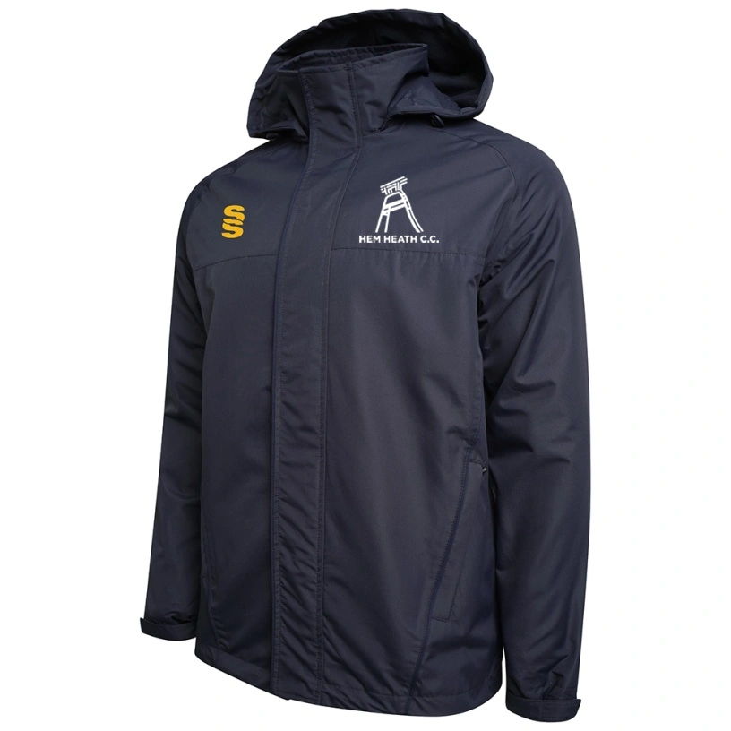 Coated showerproof ribstop polyester material with warm fleece lining. Concealed hood and pull cords. Printed SS logo.