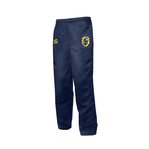 Tracksuit Trouser with microfibre back yoke panel and gusset for greater freedom of movement. Flat front elastic waistband with drawcord close for adjustabliity. Side leg zippers for easy shoe access and side seam pockets. Masuri embroidery on right leg. Side seam tab on left seam.