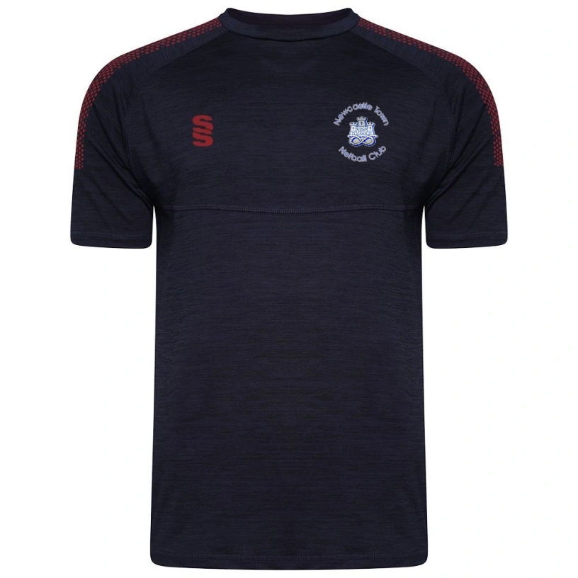Round Neck fitted t-shirt with slight performance tail and overlock stitching detail