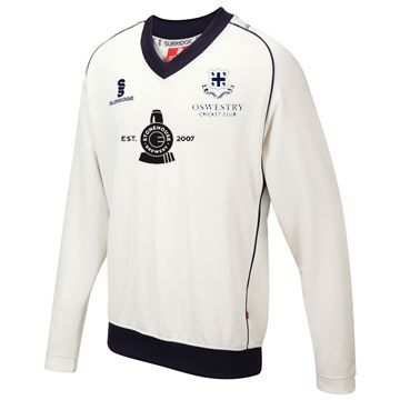 Oswestry CC Curve Long Sleeve Sweater- Navy Trim