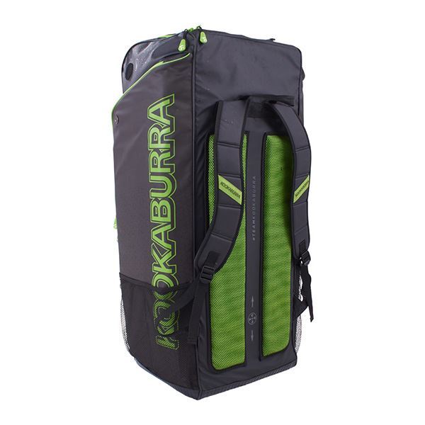 Features: Ergonomic Design Premium Padded Straps with an Airflow Mesh Cushioned Back Panel Internal Padded Bat Pocket – 2 bats External Batting Pad Pockets – 2 pads Multiple Pockets with large equipment capacity Stay Cool Fridge Pocket – 1 bottle ‘Footwearlock’ – separate compartment Durable Heavy-Duty Rubberised Bottom Material: Premium Coated 600d & Ribbed 500d Size: 900mm x 350mm x 350mm (L x W x H) , Capacity – 110 Litres