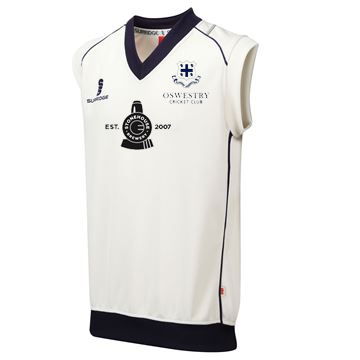 Oswestry CC Curve Sleeveless Sweater- Navy Trim